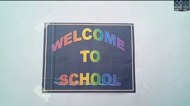 लाल कालीन पर स्कूल में दाखिल हुए नन्हे मुन्ने बच्चे