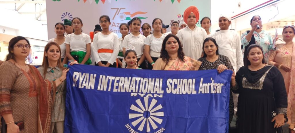 ਅੰਮ੍ਰਿਤਸਰ 14 ਅਗਸਤ (ਪਵਿੱਤਰ ਜੋਤ ) : ਰਾਯਨ ਇੰਟਰਨੈਸ਼ਨਲ ਸਕੂਲ, ਅੰਮ੍ਰਿਤਸਰ ਨੇ ਭਾਰਤ ਦੇ 75ਵੇਂ ਸੁਤੰਤਰਤਾ ਦਿਵਸ ਮੌਕੇ ਰਾਯਨ ਇੰਸਟੀਚਿਊਟ ਦੇ ਚੇਅਰਮੈਨ ਸਰ ਡਾ: ਏ. ਐੱਫ. ਪਿੰਟੋ ਅਤੇ ਐਮ.ਡੀ ਮੈਡਮ ਡਾ.ਗ੍ਰੇਸ ਪਿੰਟੋ ਦੀ ਸੁਚੱਜੀ ਅਗਵਾਈ ਹੇਠ ਆਜ਼ਾਦੀ ਸੰਗਰਾਮ ਦੇ ਮਹਾਨ ਨਾਇਕਾਂ ਦੀਆਂ ਕੁਰਬਾਨੀਆਂ ਨੂੰ ਯਾਦ ਕਰਨ ਲਈ ਨੈਕਸਸ ਮਾਲ(Nexus Mall) ਅੰਮ੍ਰਿਤਸਰ ਵਿਖੇ ਇੱਕ ਦੇਸ਼ ਭਗਤੀ ਅਤੇ ਸੱਭਿਆਚਾਰਕ ਪ੍ਰੋਗਰਾਮ ਦਾ ਆਯੋਜਨ ਕੀਤਾ। ਇਸ ਆਜ਼ਾਦੀ ਨੂੰ ਪ੍ਰਾਪਤ ਕਰਨ ਲਈ ਅਸੀਂ ਜੋ ਕੀਮਤ ਚੁਕਾਈ ਹੈ, ਉਸਨੂੰ ਜਨਤਾ ਨੂੰ ਯਾਦ ਕਰਵਾਉਣ ਲਈ ਪਹਿਲਕਦਮੀ ਕੀਤੀ। ਇਸ ਤਹਿਤ ਵਿੱਦਿਆਰਥੀਆਂ ਨੇ ਭਾਰਤੀ ਆਜ਼ਾਦੀ ਘੁਲਾਟੀਆਂ ਨੂੰ ਸ਼ਰਧਾਂਜਲੀ ਭੇਟ ਕਰਦਿਆਂ ਦੇਸ਼ ਭਗਤੀ ਦਾ ਨਾਟਕ ਪੇਸ਼ ਕੀਤਾ।