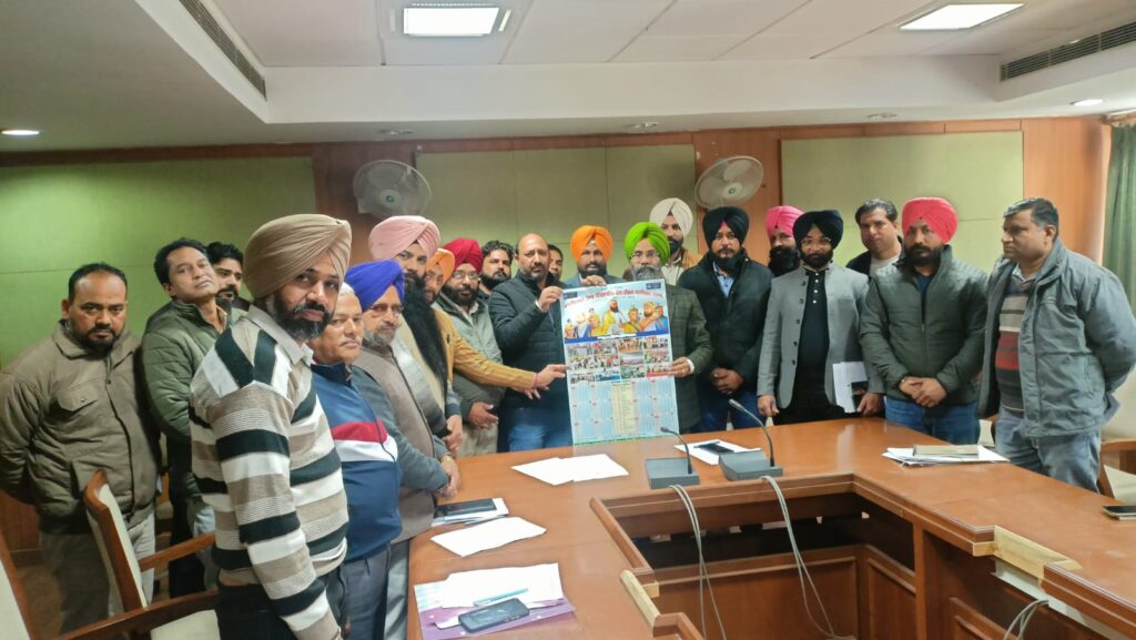 ਅੰਮ੍ਰਿਤਸਰ 22ਦਸੰਬਰ (ਰਾਜਿੰਦਰ ਧਾਨਿਕ ) : ਮਲਟੀਪਰਪਜ ਹੈਲਥ ਇੰਪਲਾਈਜ਼ ਮੇਲ ਫੀਮੇਲ ਯੂਨੀਅਨ ਪੰਜਾਬ ਦਾ ਸਲਾਨਾ ਕਲੰਡਰ 2023 ਡਾਇਰੈਕਟਰ ਸਿਹਤ ਸੇਵਾਵਾ ਡਾ ਰਣਜੀਤ ਸਿੰਘ ਨੇ ਆਪਣੇ ਦਫਤਰ ਵਿੱਚ ਰਿਲੀਜ ਕੀਤਾ ਇਸ ਮੋਕੇ ਜਥੇਬੰਦੀ ਦੇ ਆਗੂ ਸੁਬਾਈ ਪ੍ਰਧਾਨ ਗੁਰਪ੍ਰੀਤ ਸਿੰਘ ਮੰਗਵਾਲ ,ਪੰਜਾਬ ਸੁਬਾਰਡੀਨੇਟ ਸਰਵਿਸ ਫੈਡਰੇਸ਼ਨ ਦੇ ਸੁਬਾਈ ਪ੍ਰਧਾਨ ਰਣਜੀਤ ਸਿੰਘ ਰਾਣਵਾ ਦੀ ਅਗਵਾਈ ਹੇਠ ਹੋਰ ਸੂਬਾ ਆਗੂ ਪ੍ਰਭਜੀਤ ਸਿੰਘ ਉੱਪਲ/ਵੇਰਕਾ ,ਅਵਤਾਰ ਸਿੰਘ ਗੰਢੂਆ, ਜਗਤਾਰ ਸਿੰਘ ਪਟਿਆਲਾ ,ਰਣਦੀਪ ਸਿੰਘ ਫਤਿਹਗੜ੍ਹ ਸਾਹਿਬ , ਗਗਨਦੀਪ ਸਿੰਘ ਖਾਲਸਾ,ਨਿਸਾਨ ਸਿੰਘ ਗੁਰਦਾਸਪੁਰ ,ਸੰਜੇ ਕੁਮਾਰ ਫਜਿਲਕਾ ,ਦਲਜੀਤ ਢਿਲੋ ,ਸਤਨਾਮ ਸਿੰਘ ਬਾਰੀਆ,ਜਲੰਧਰ ,ਬਲਜੀਤ ਸਮਾਣਾ ,ਕੁਲਵਿੰਦਰ ਸਿੱਧੂ ,ਰਾਜਿੰਦਰ ਪਾਲ ਸਿੰਘ ਤੋ ਇਲਾਵਾ ਫੈਡਰੇਸ਼ਨ ਆਗੂ ਕਰਤਾਰ ਸਿੰਘ ਪਾਲ ,ਕਿ੍ਸਨ ਪ੍ਰਸਾਦ ਹੋਰ ਆਗੂ ਹਾਜਰ ਸਨ ਡਾਇਰੈਕਟਰ ਸਿਹਤ ਸੇਵਾਵਾ ਪਰਿਵਾਰ ਭਲਾਈ ਨੇ ਜਥੇਬੰਦੀ ਦੇ ਉਪਰਾਲੇ ਦੀ ਸਲਾਘਾ ਕੀਤੀ ।ਜਥੇਬੰਦੀ ਦੇ ਆਗੂਆ ਨੇ ਦੱਸਿਆ ਕਿ ਜਥੇਬੰਦੀ ਹਰ ਸਾਲ ਆਪਣਾ ਕਲੰਡਰ ਜਾਰੀ ਕਰਦੀ ਹੈ ਇਸ ਕਲੰਡਰ ਵਿੱਚ ਜਥੇਬੰਦਕ ਸਰਗਰਮੀਆਂ ,ਛੁੱਟੀਆ ਦਾ ਵੇਰਵਾ ਅਤੇ ਸਲਾਨਾ ਕਲੰਡਰ ਵਿੱਚ ਤਿਉਹਾਰ ਵੈਗਰਾ ਦਾ ਵੇਰਵਾ ਦਰਜ ਕੀਤਾ ਹੋਇਆ ਹੈ ਇਸ ਮੋਕੇ ਹੋਰ ਆਗੂ ਵੀ ਹਾਜਰ ਸਨ।
