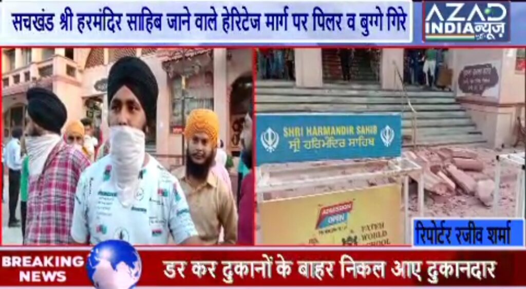 सचखंड श्री हरमंदिर साहिब को जाते हेरिटेज मार्ग पर गिरे पिलरों साहित बुगे