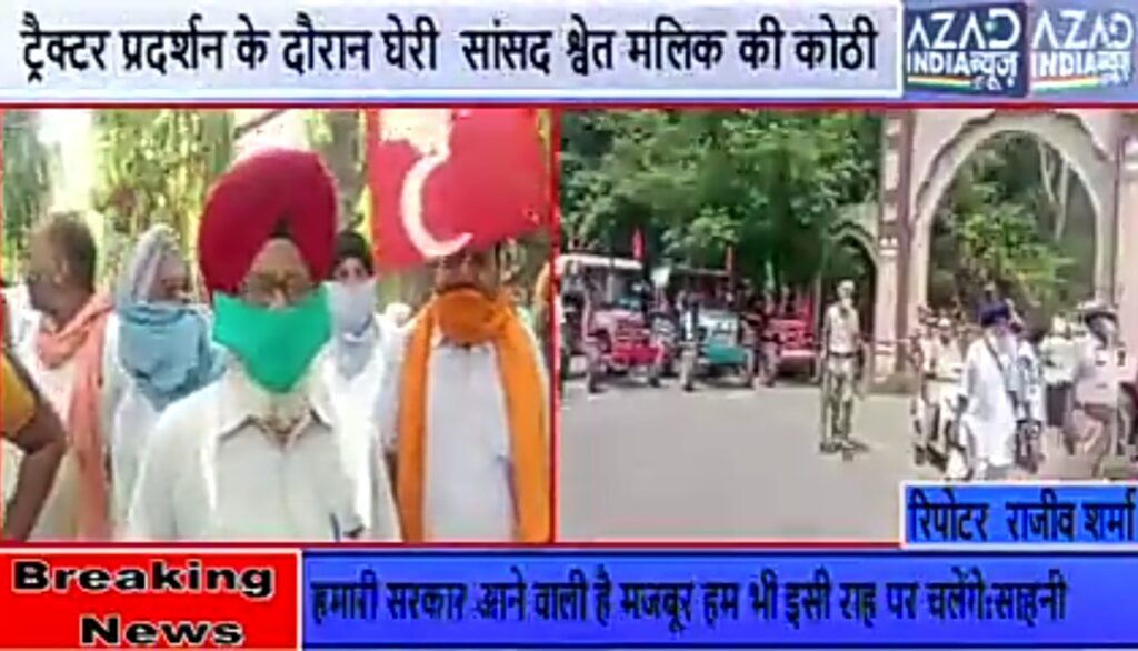 किसान विरोधी फैसलों के खिलाफ किसानों ने ट्रैक्टर प्रदर्शन करते हुए श्वेत मलिक के घर का किया घेराव